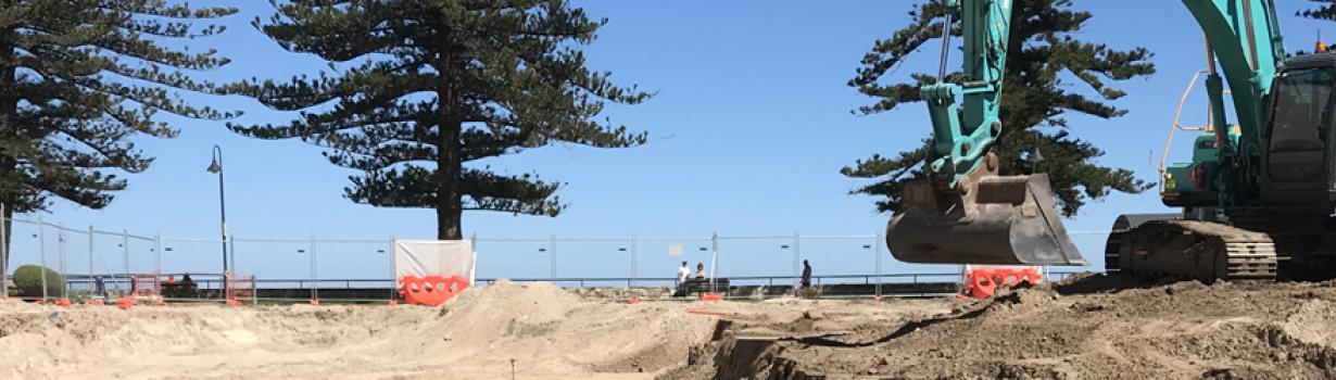 In 2017, the new 11-storey building on South Esplanade, Glenelg Foreshore, presented a unique engineering challenge. The building, which included a two-level basement car park, was constructed on extremely soft ground consisting of loose dune sand with an assumed CBR of 2%.